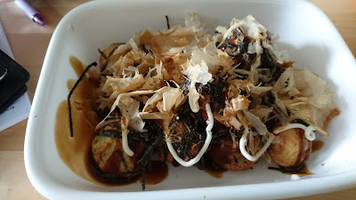 (This is my first time making Takoyaki! There wasn't much time to turn it, and much perspiration came when making it. I'm so happy that it turned out well!)