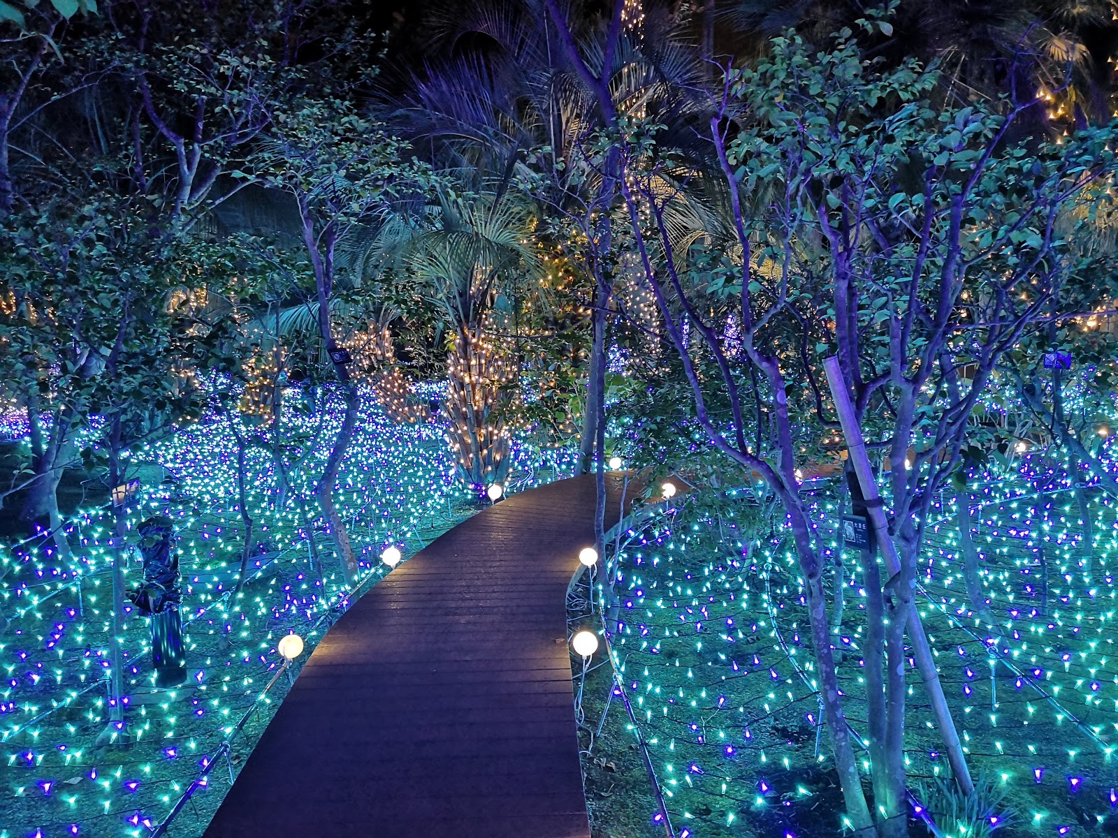 (We took the Enoshima Electric Railway again and reached Enoshima. Enoshima at night is gorgeous!)